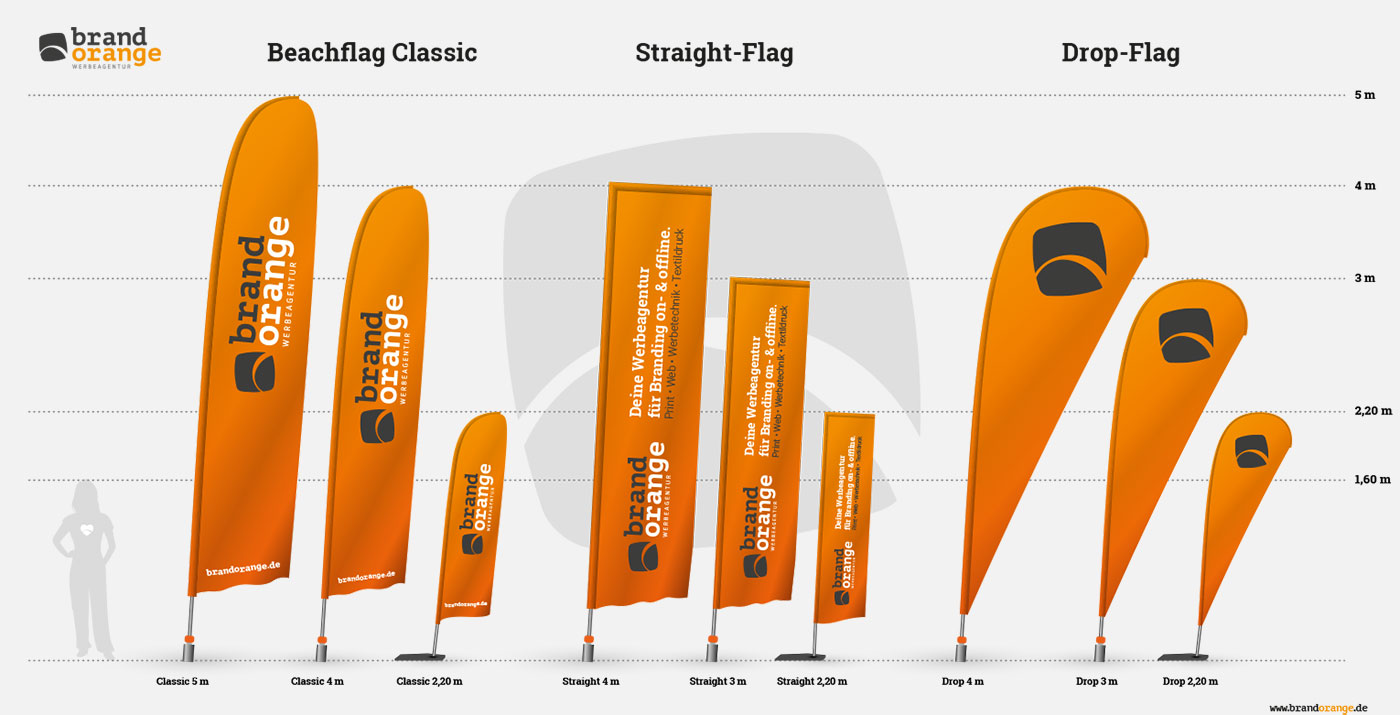 Suchst du Beachflags? Die gibt's bei uns auch! Wir bieten 3 Formen (Classic-Flag, Drop-Flag und Straight-Flag) in je 3 Größen an.